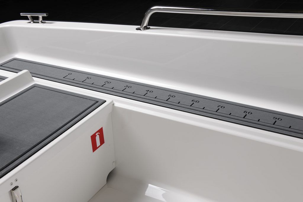 Halkfri samt UV beständig durkmatta i grå EVA-material som ger båten ett mycket behagligt däck att gå på.