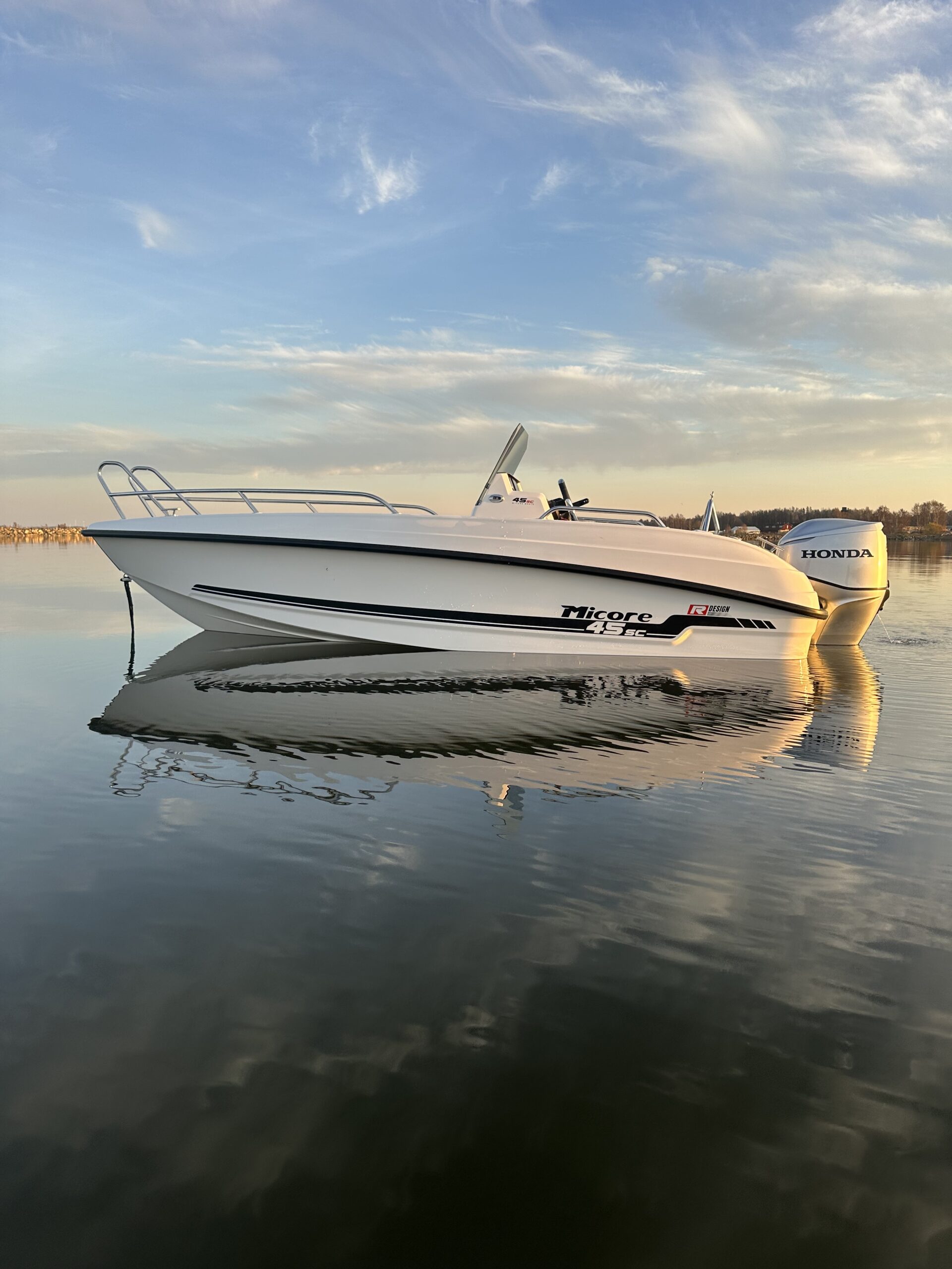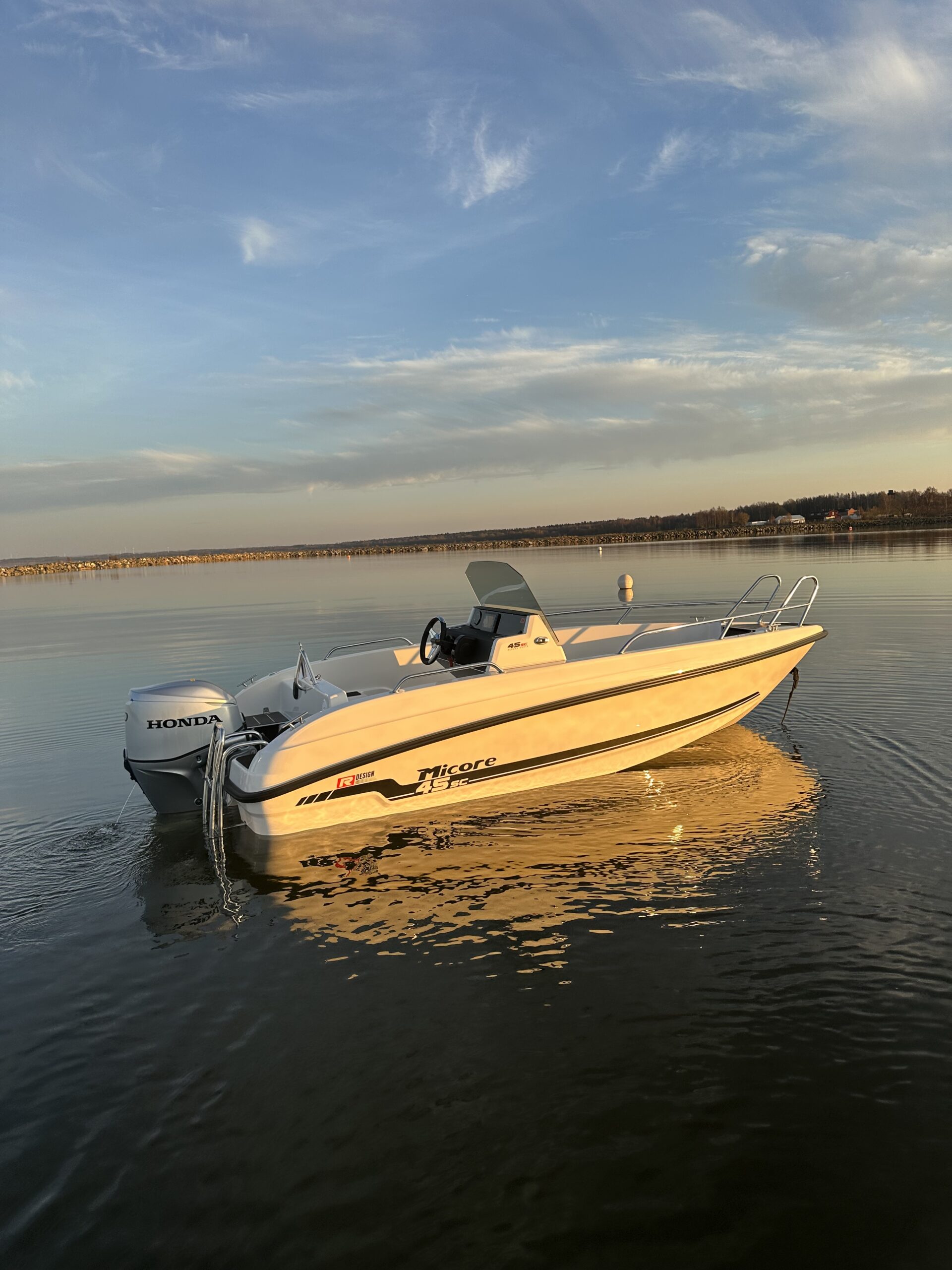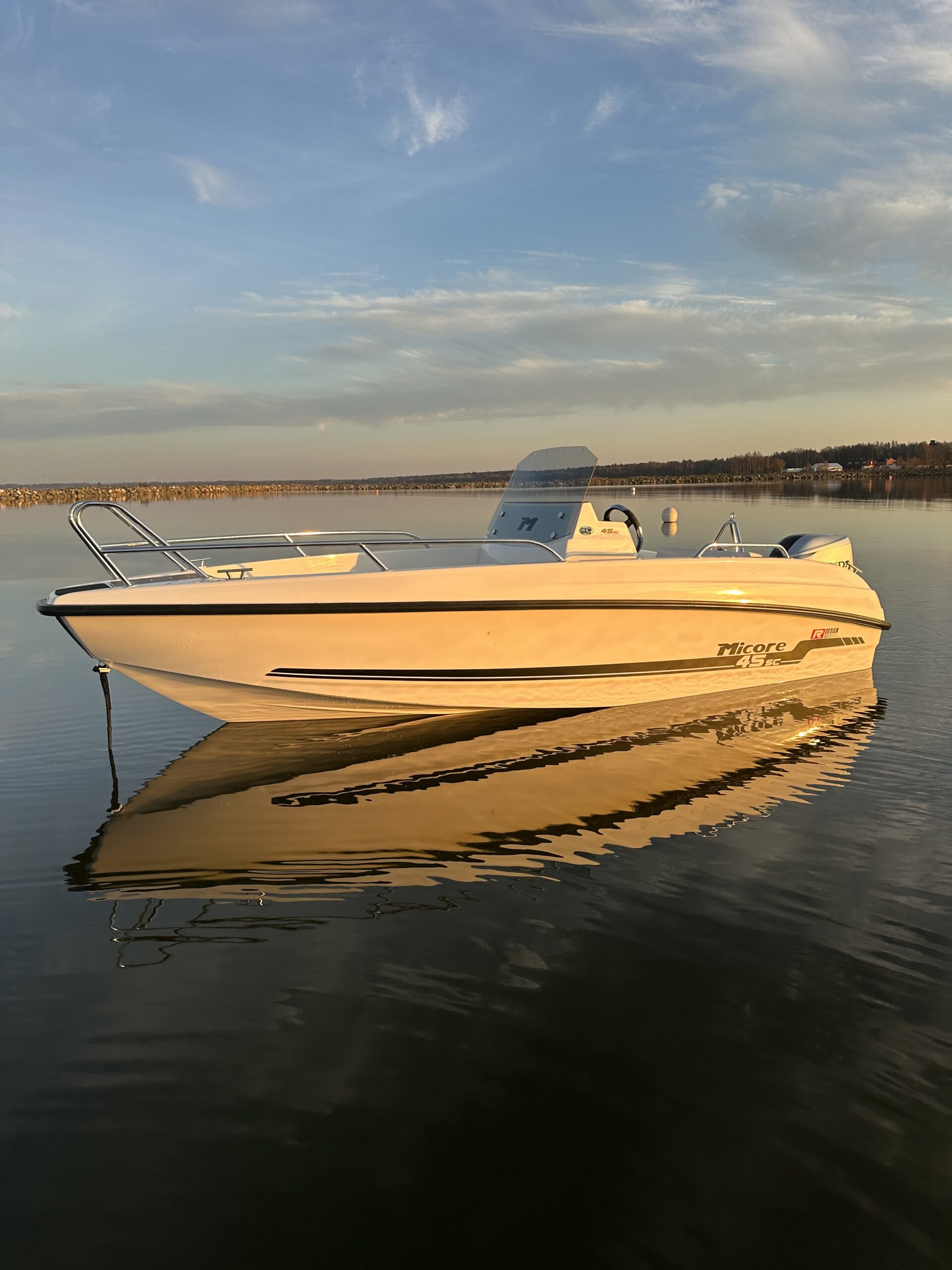 Vår nya länge efterlängtade båtmodell är äntligen lanserad – ett resultat av lång utveckling och höga ambitioner. Med sjöegenskaper överlägsen likvärdiga båtar, imponerande stabilitet och följsam gång levererar den en trygg men samtidigt förnöjsam upplevelse. Den moderna designen och genomtänkta helheten gör båten lika rolig att köra som behaglig att vistas i. Mycket båtglädje för pengen.